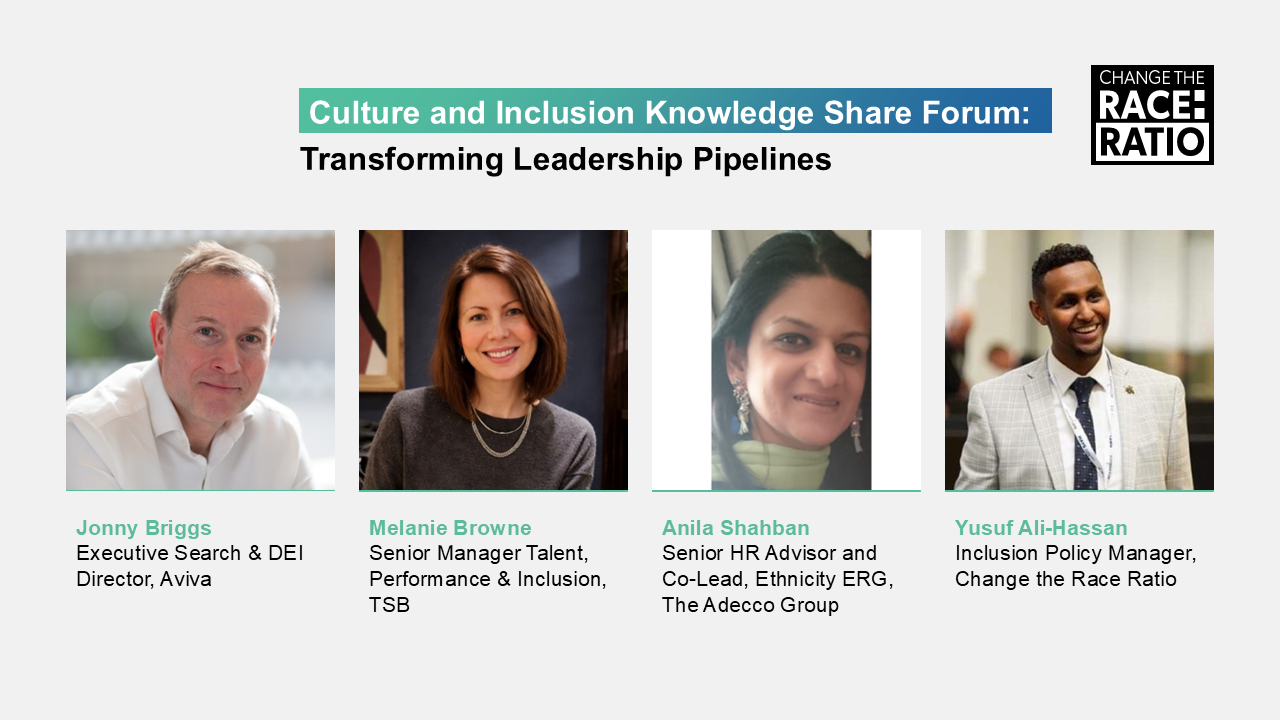 In April 2026, Change the Race Ratio launched Transforming Leadership Pipelines, a good practice member guide with actions and takeaways from organisations that are working to increase ethnic minority representation in senior leadership.